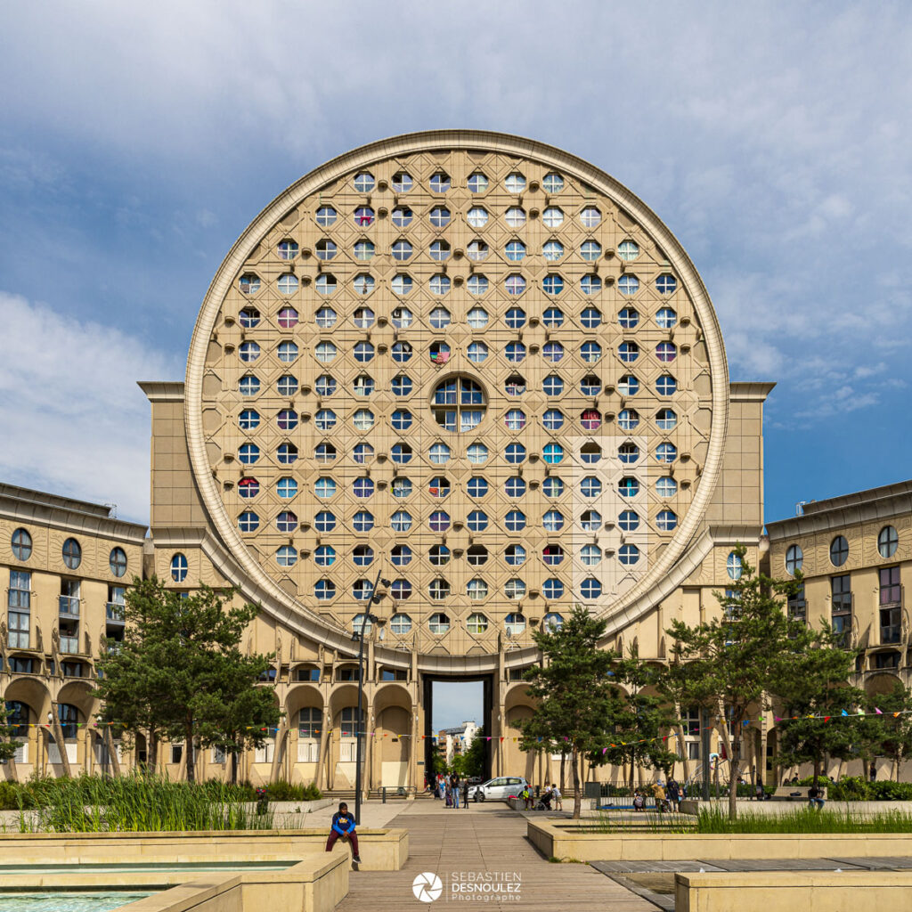 Photographie des Arènes de Picasso à Noisy-le-Grand – Urbanisme postmoderne et géométrie architecturale