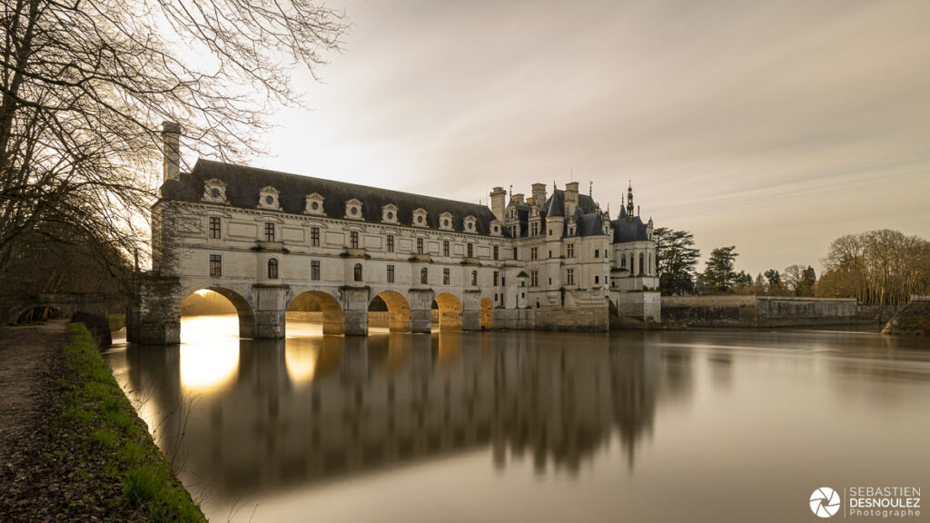 Château de Chenonceau at Sunset – Golden Light and Winter Reflections