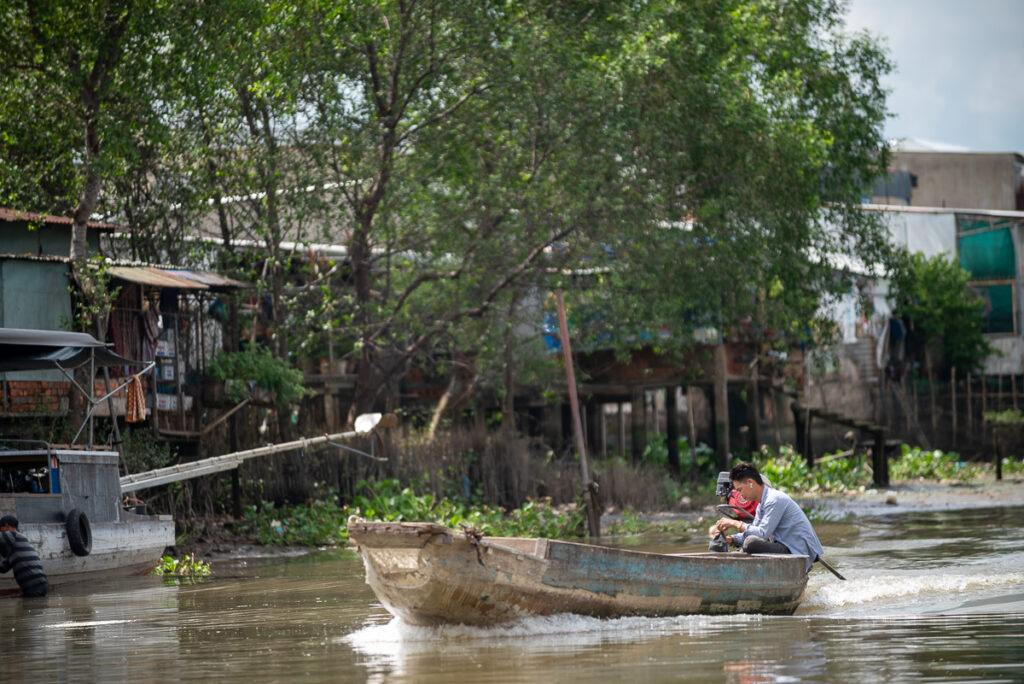 Capturing the essence of the Mekong Delta is no easy task. The landscape is often flat and lacks elevation, so it’s important to focus on details: daily gestures, water reflections, the texture of wooden boats, and fleeting exchanges between vendors.
