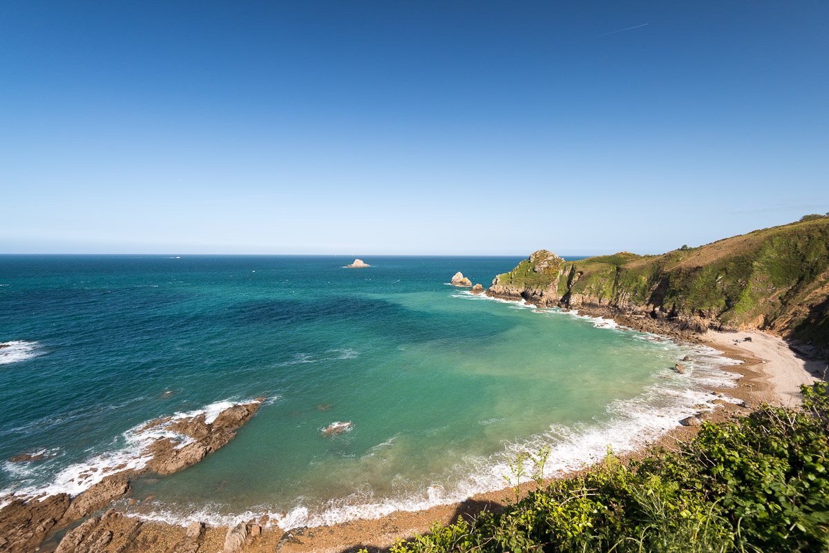 The turquoise colors of the sea, the lush vegetation on the cliffs, and the boats aligned between the wooden posts give the place an almost tropical look. Yet this is unmistakably a Breton landscape, shaped by the elements and preserved in its authenticity. The rocky coastline and crystalline waters enhance the contrast between the vivid green of the heights and the deep blue of the Atlantic Ocean.