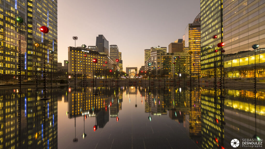 Takis Pool at Sunset – Reflections and Urban Geometry at La Défense