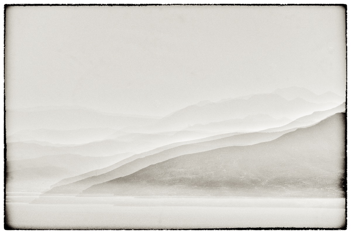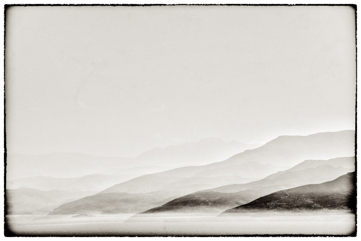 Les premières images de cette série ont été réalisées en août 2021 dans la baie de Nauplie, au sein du golfe Argolique en Grèce. À cette période, des incendies majeurs touchaient d’autres régions du pays. Les fumées se déposaient sur les reliefs et flottaient au-dessus de la mer, atténuant les détails et réduisant le contraste général du paysage.