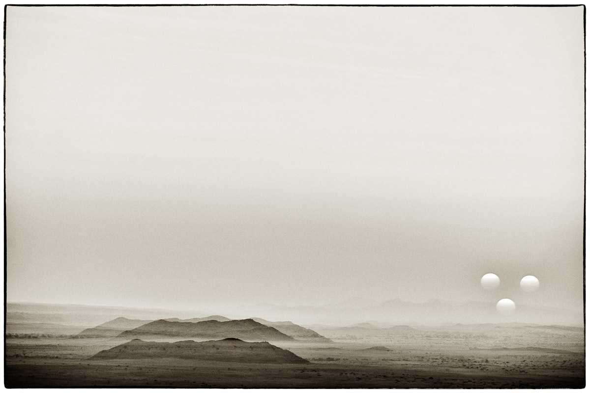 On y retrouve des collines et massifs rocheux dans le désert du Namib Naukluft, aux formes épurées accentuées par la lumière rasante. D’autres clichés montrent les dunes de Hattah dans l’émirat de Dubaï, les massifs karstiques de la baie d’Ha Long enveloppés de brume, la skyline de Los Angeles à peine visible sous la chaleur estivale, ou encore les montagnes d’Al Ruman, dans l’émirat de Fujairah, au bord du golfe d’Oman.