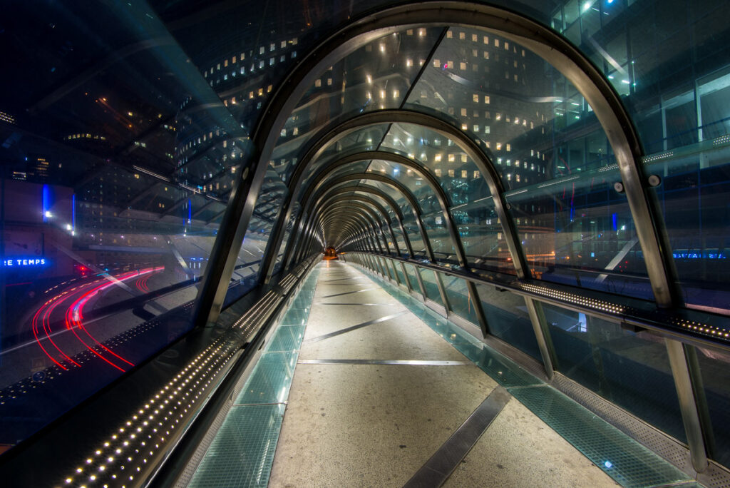 Cette série nocturne vous plonge au cœur de l’architecture futuriste de La Défense. Le Japan Bridge devient, sous l’objectif du photographe, un tunnel de lumière et de géométrie hypnotique. Une immersion visuelle dans l’univers graphique des structures contemporaines.