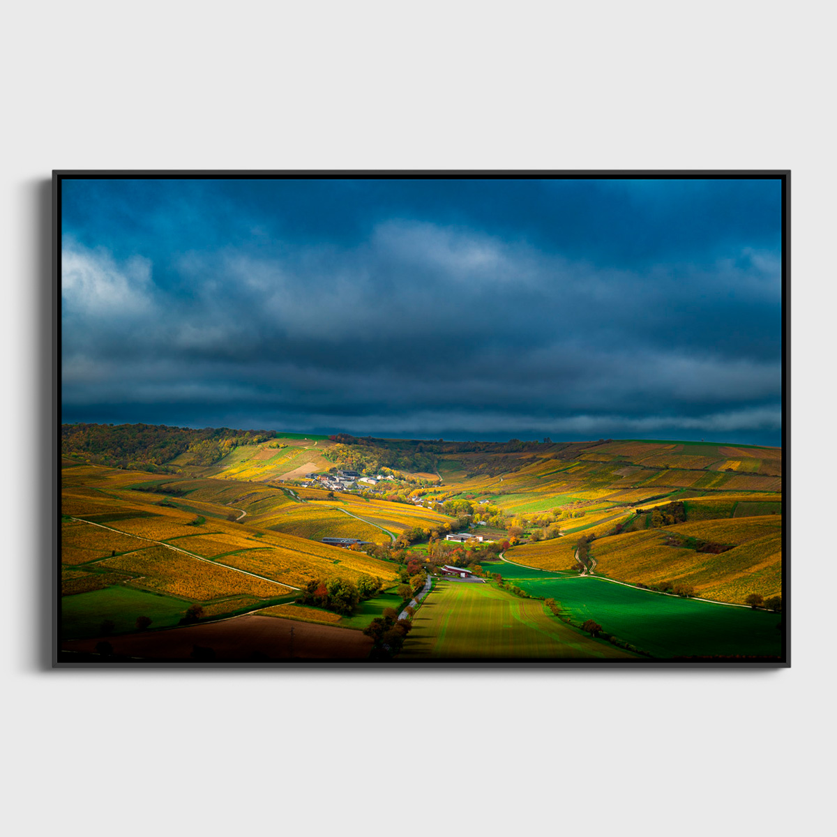 Les visuels sont présentés encadrés en caisse américaine, une finition que j’utilise régulièrement pour mes tirages d’art. Cela permet de mieux projeter l’image dans un intérieur et de garder un cadre discret, sans verre, qui laisse la photographie respirer.