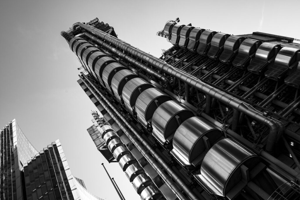 Le bâtiment qui m'a le plus marqué est le Lloyd's Building, construit entre 1978 et 1986 selon les plans de l'architecte Richard Rogers. Les escaliers et conduites en acier inoxydable sont placées à l'extérieur de la structure pour laisser dégagé l'espace intérieur. Les éléments en inox sont particulièrement graphiques et font penser à une raffinerie en pleine ville. J'imagine qu'à la tombée de la nuit, avec un peu de brouillard et la lueur jaune de l'éclairage urbain, on doit retrouver une ambiance à la Blade Runner.